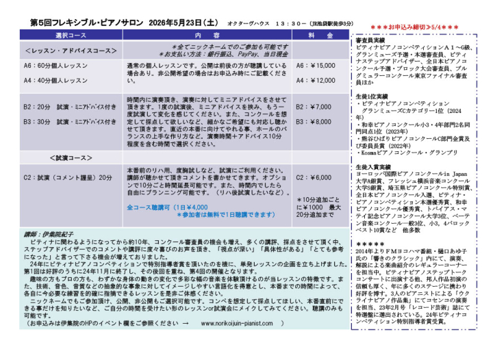 第5回フレキシブル・ピアノサロン 2026年5月23日(土)13:30-開催